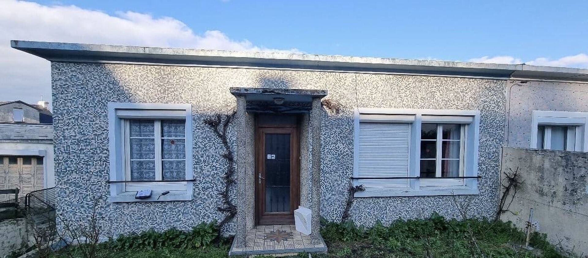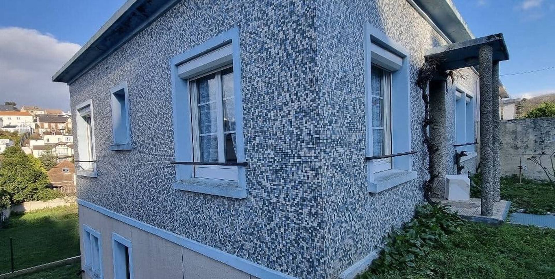 Sur les premières image, on découvre une façade recouverte d’un revêtement mosaïque qui, bien que typique de certaines périodes, montre des signes d’usure. Les encadrements des fenêtres et l’entrée principale manquaient de contraste et d’éclat.