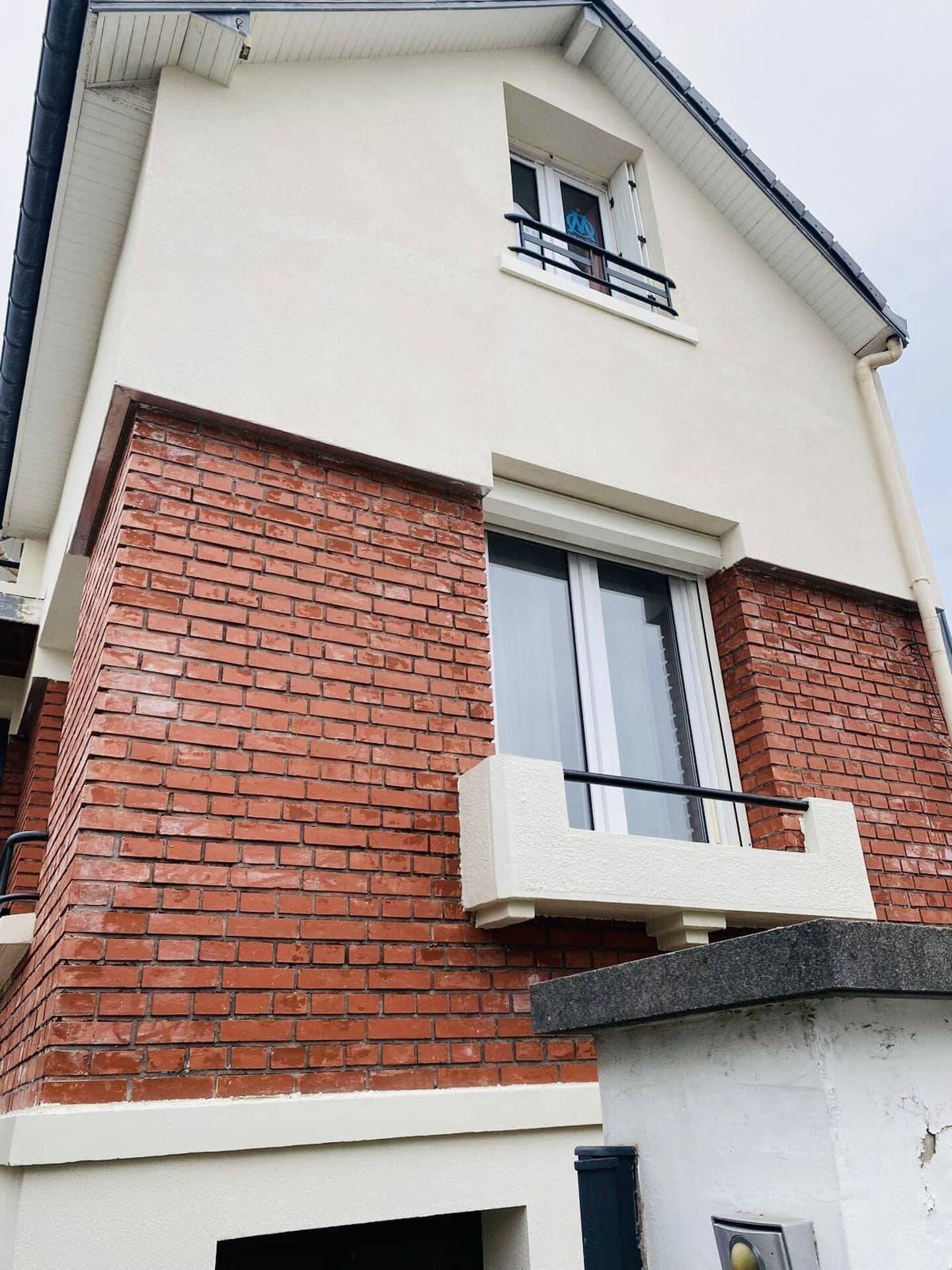 Au Havre, de nombreux propriétaires de maisons en briques cherchent à améliorer leur confort thermique tout en préservant l’esthétique de leur habitation. Cette maison, récemment rénovée, en est un parfait exemple. Les façades ont bénéficié d’une isolation thermique par l’extérieur (ITE) combinée à un ravalement, mettant en valeur le contraste entre les briques rouges et un enduit clair moderne.